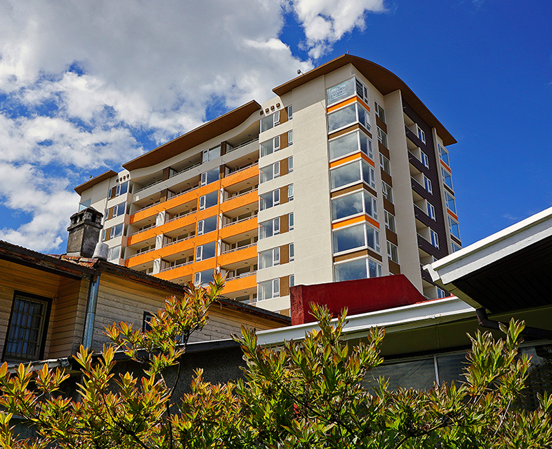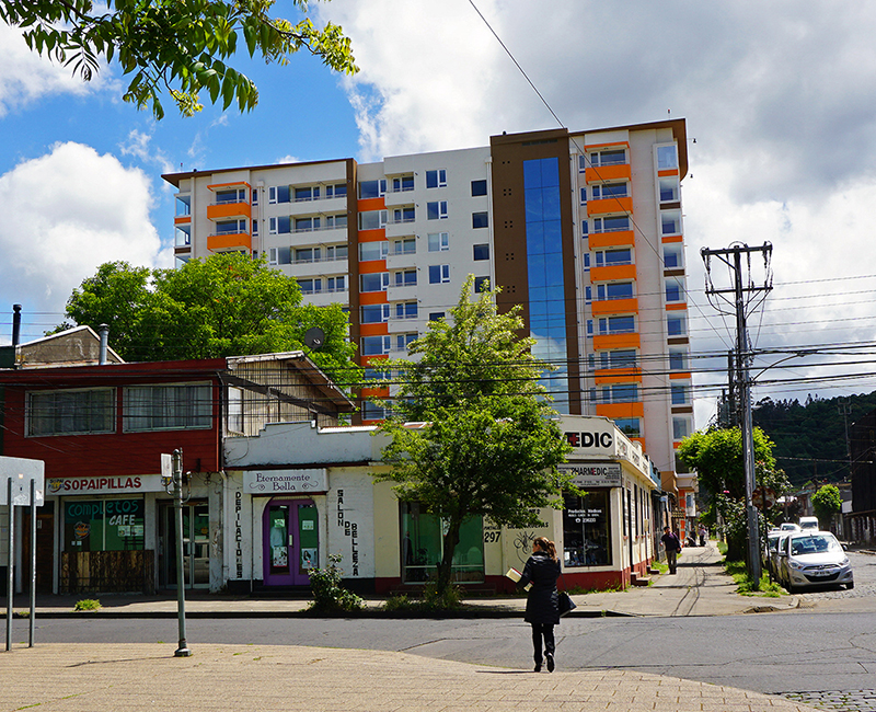 Bordeplaza es un proyecto de renovación de un sector pericentral de Temuco, emplazado entre el centro mismo y el barrio Alemania, con mucha cercanía al Hospital Regional y universidades, el antiguo barrio de Coilaco. En esta zona el Plan Regulador fija condiciones más restrictivas, y por ello el edificio tiene una altura de 12 pisos más un nivel subterráneo de estacionamientos y bodegas, para lo cual el Nivel 1 se deprimió en 3 peldaños, bajo el nivel de vereda; con ello el acceso se genera a través de un amplio porche rehundido que caracteriza el proyecto.
